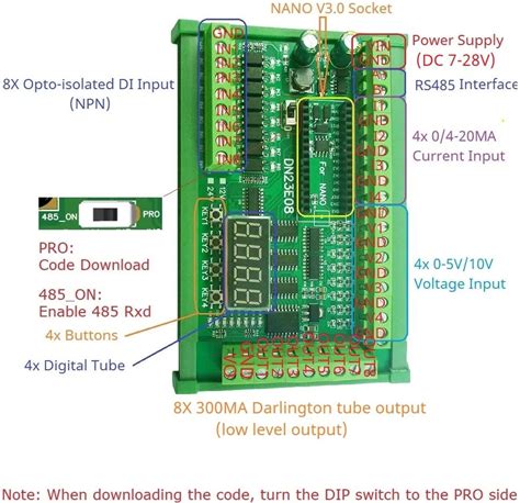 Arduino Nano Industrial Carrier Board +24V Power Supply RS485 Communication Modbus DIN Rail Mounting