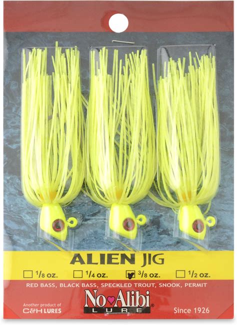 No Alibi Alien Jig - Inshore Saltwater Jig For Redfish, Trout, Flounder, Spanish Mackerel - Skirted & Unskirted - Chrome & Color Jig Heads - 1/8 To 1/